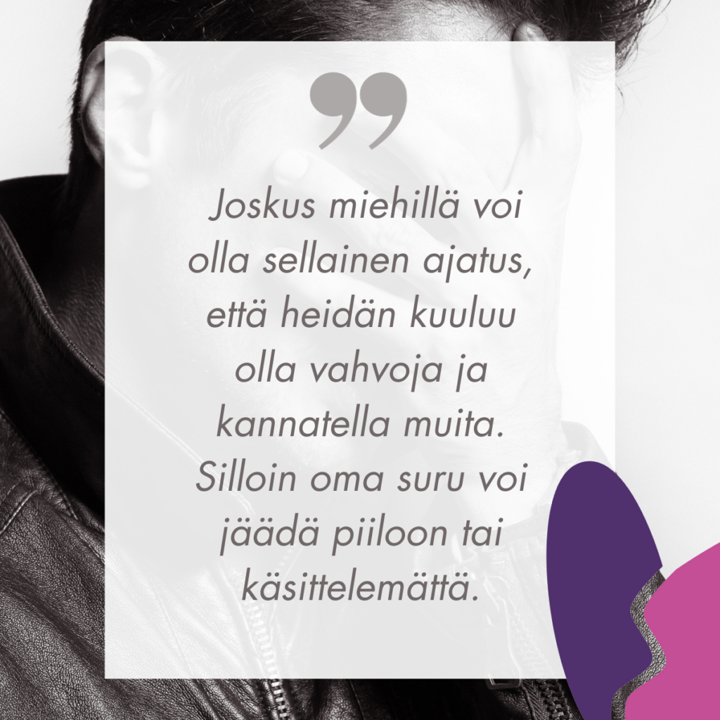 Kun miehet tulevat vertaisryhmään, niin usein niitä sanoituksia alkaa löytyä. Kun kuulee toisen samankaltaisessa tilanteessa olevan puhuvan, niin saa sanoituksia omille kokemuksilleen ja tunteilleen. Vertaistuki voi auttaa siihen, että antaa itselleen luvan käsitellä surua omalla tavallaan.