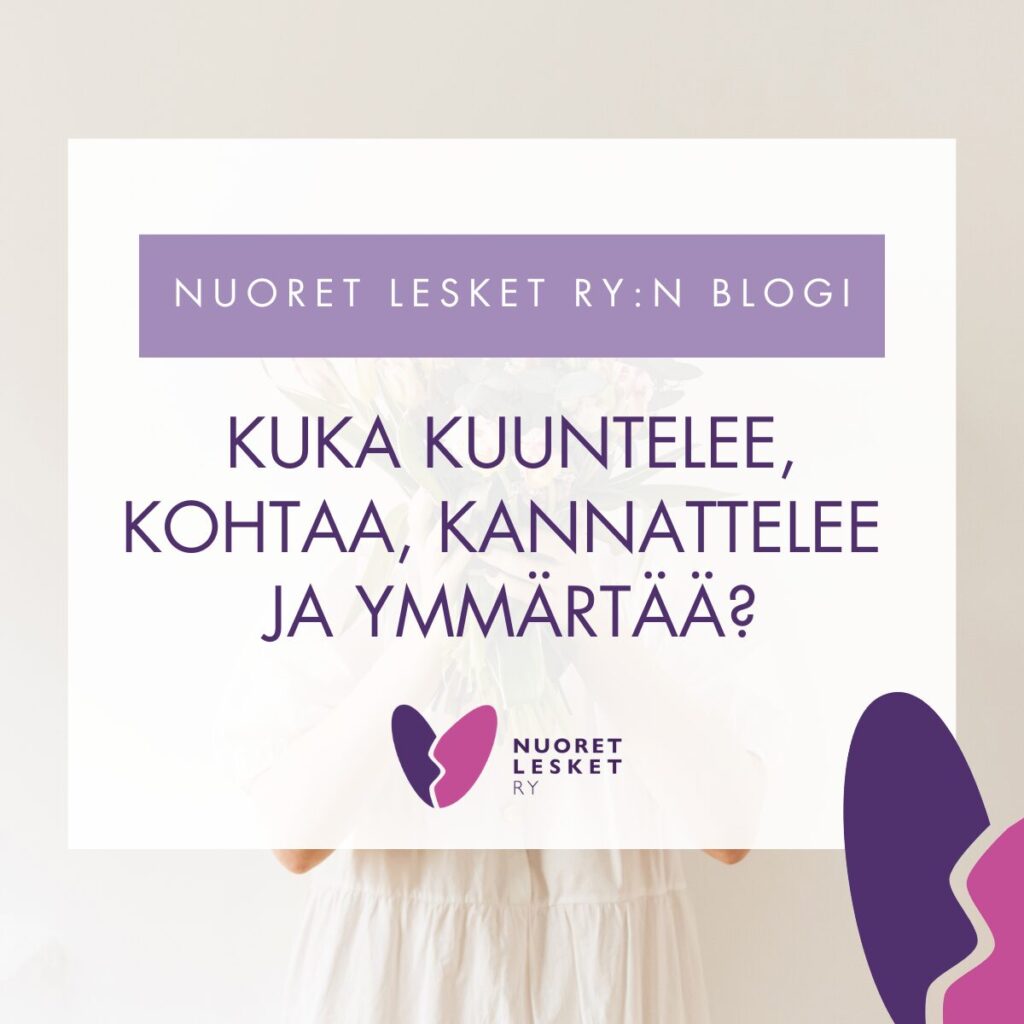 Vertaistuki on korvaamatonta, ainutkertaista ja voimaannuttavaa. Se ei ole, eikä korvaa ammattiapua, mutta sillä voi olla valtavan terapeuttisia vaikutuksia. On eri asia puhua vertaiselle, kuin sellaiselle, joka ei itse ole kokenut menetystä. Nuorten leskien vertaistukiryhmissä itketään ja nauretaan, halataan ja kuunnellaan. Ymmärretään ja kohdataan. Tiedetään, että toisina päivinä mikään ei tunnu miltään ja samaan aikaan kaikki tuntuu ihan hirveältä, toisina taas elämänilo on surua vahvempi. Aina ei tarvita edes sanoja, vertaiset ymmärtävät ilman niitäkin. Surun meren pohjavirrasta kumpuaa jotain surua vahvempaa voimaa.