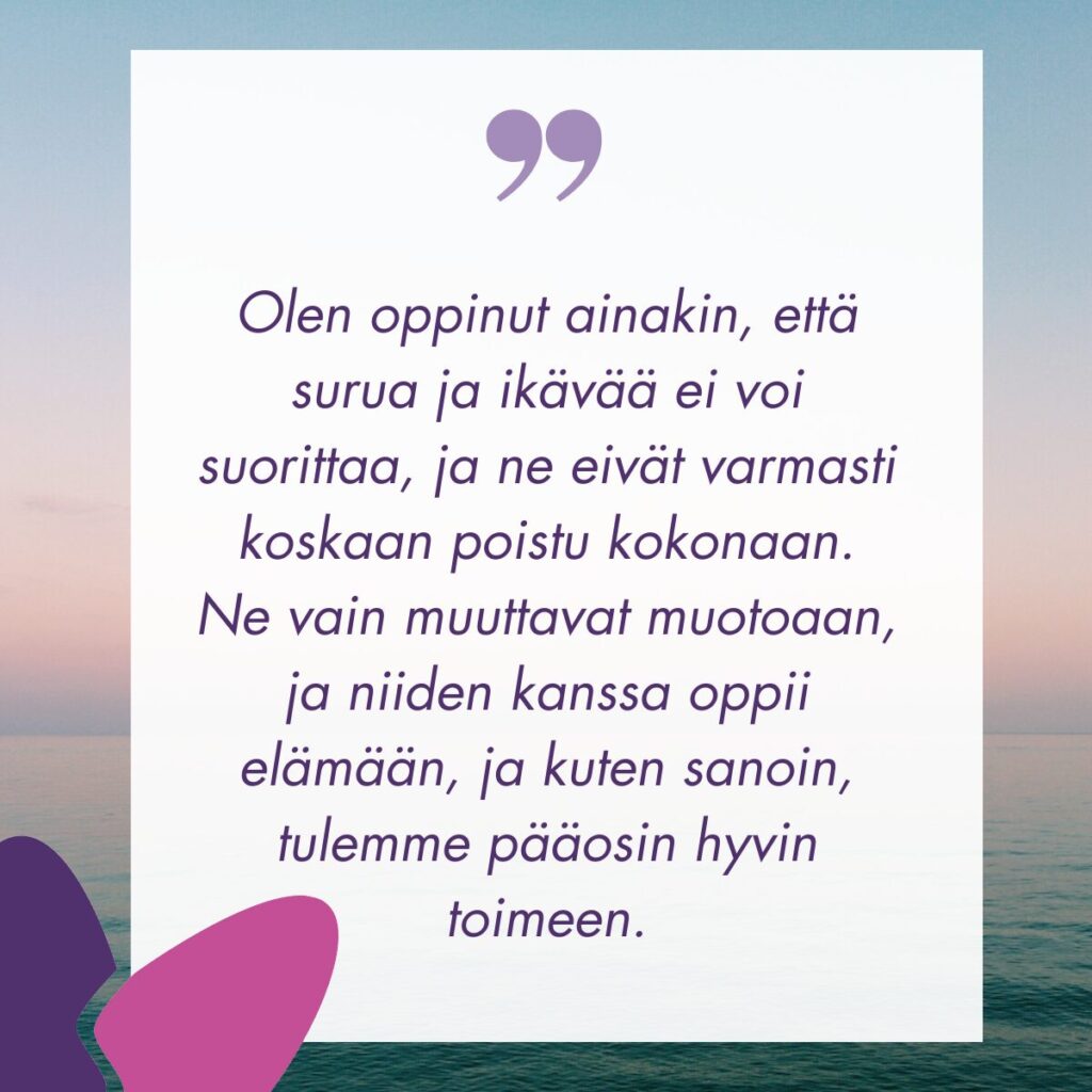 Kiitos lämminhenkisestä kirjoituksesta. Itselleni tämä yllätys tuli kohdalle vuoden 2024 toukokuussa. Sitä ennen en tiennyt surusta mitään. Olen jopa vähän yllättynyt siitä miten kauan ikävä kestää. Toivon sinulle kaikkea hyvää ja ilon pilkahdusten pidentymistä tulevaisuuteen.