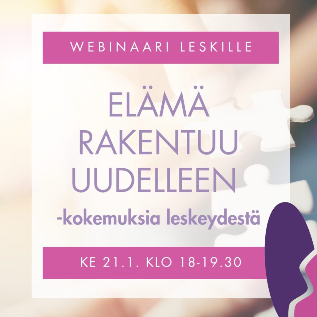 Nuoret Lesket ry järjestää maksuttoman webinaarin keskiviikkona 21.1. klo 18.00–19.30 Zoomissa. Webinaari on suunnattu kaikille työikäisenä leskeytyneille.