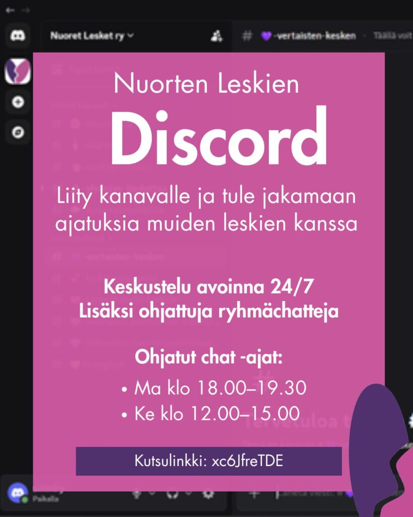 - Liity Nuorten Leskien Discord-palvelimelle alla olevan kutsulinkin kautta: xc6JfreTDE